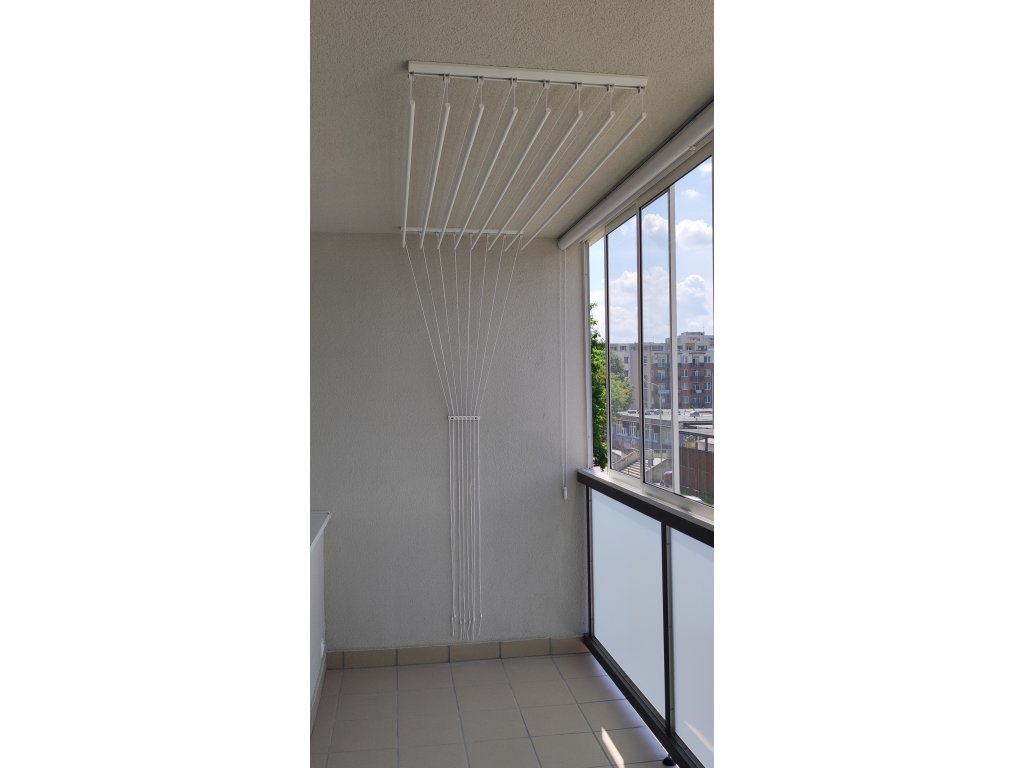 Nastaviteľné rozostupy: Pred montážou si nastavte rozostupy medzi tyčami, aby ste obišli svetlá alebo kvetináče a prispôsobili sušiak presne podľa vašich potrieb.
